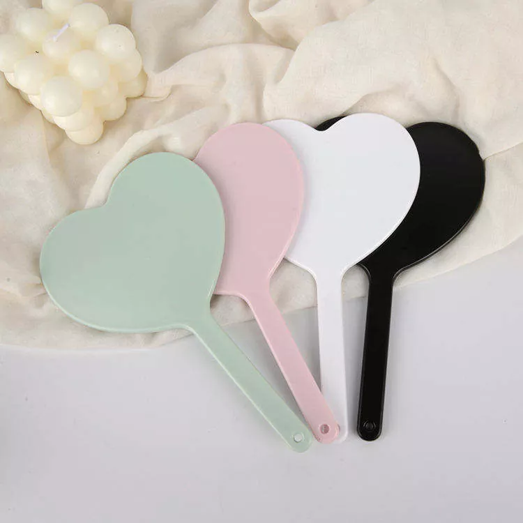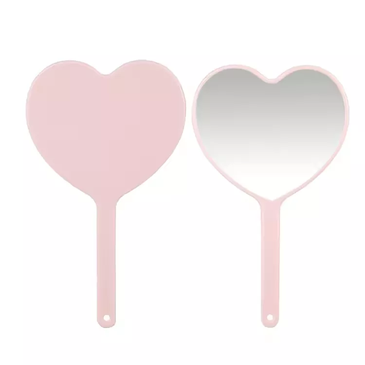 Dette søde hjerteformede håndholdte makeupspejl har en high-definition, forvrængningsfri glasoverflade til præcis makeuppåføring. Dens lette plastikhåndtag med et hængende hul sikrer nem transport og opbevaring. Fås i flere farver og understøtter brugerdefineret logoudskrivning - ideel til private label, gaver eller salonbrug.