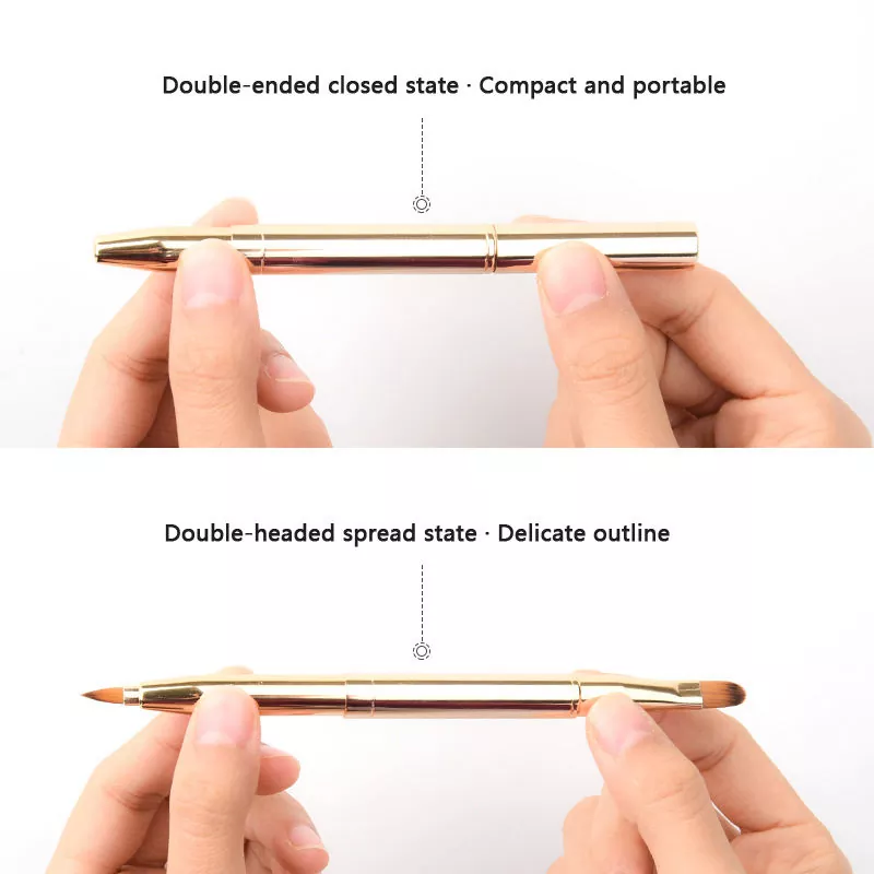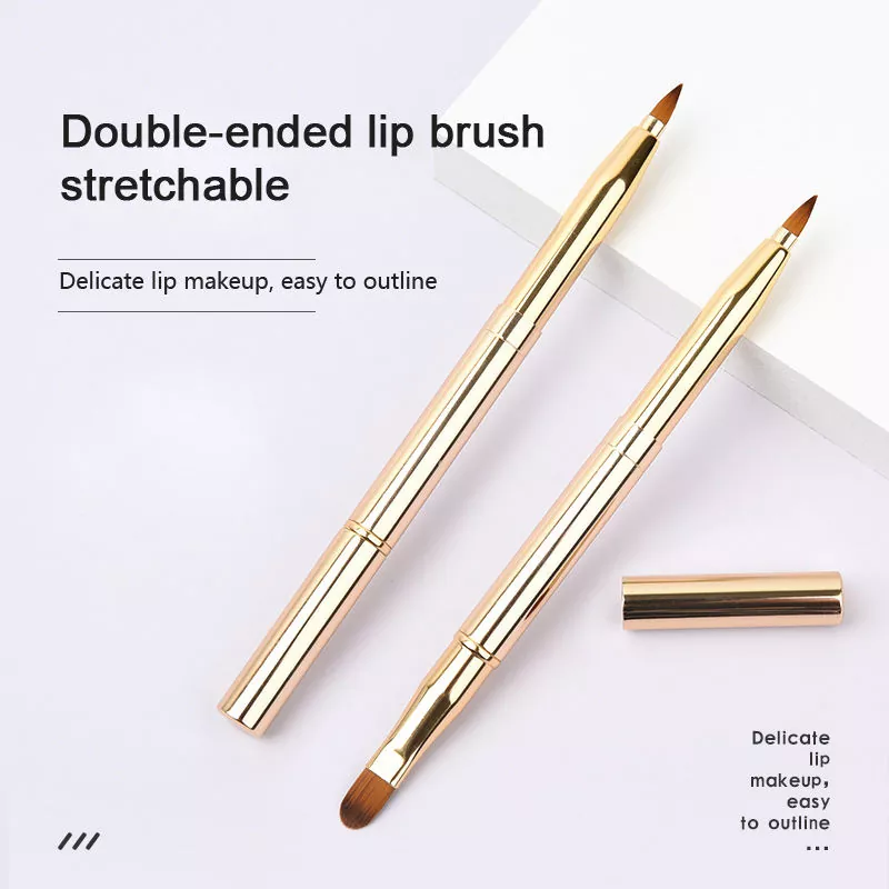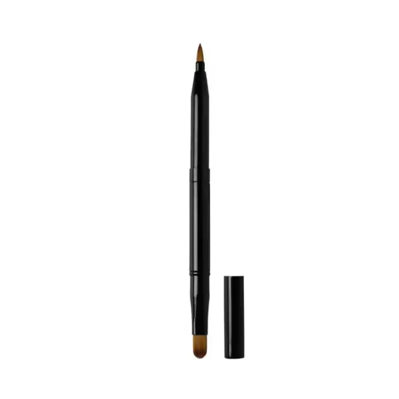 Denne læbe-sminkebørste har et dobbelt-endet design med bløde syntetiske børster. Den har en præcis spids til at skitsere læbelinjer og en flad børste til fyldfarve med et slankt metalhåndtag for let greb og brug på farten.